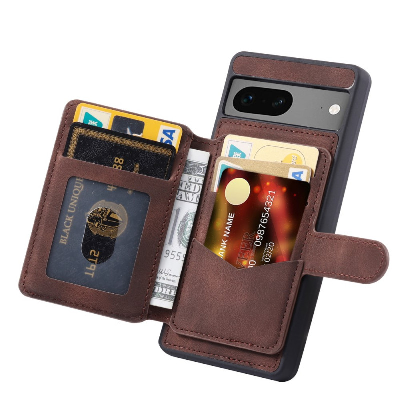Suojaa Google Pixel 7A -puhelimesi tällä kuvioidulla keinonahkaisella RFID-suojuksella, jossa on pidike, joka toimii myös korttipidikkeenä.