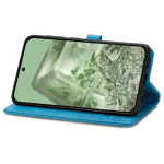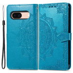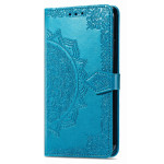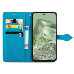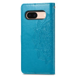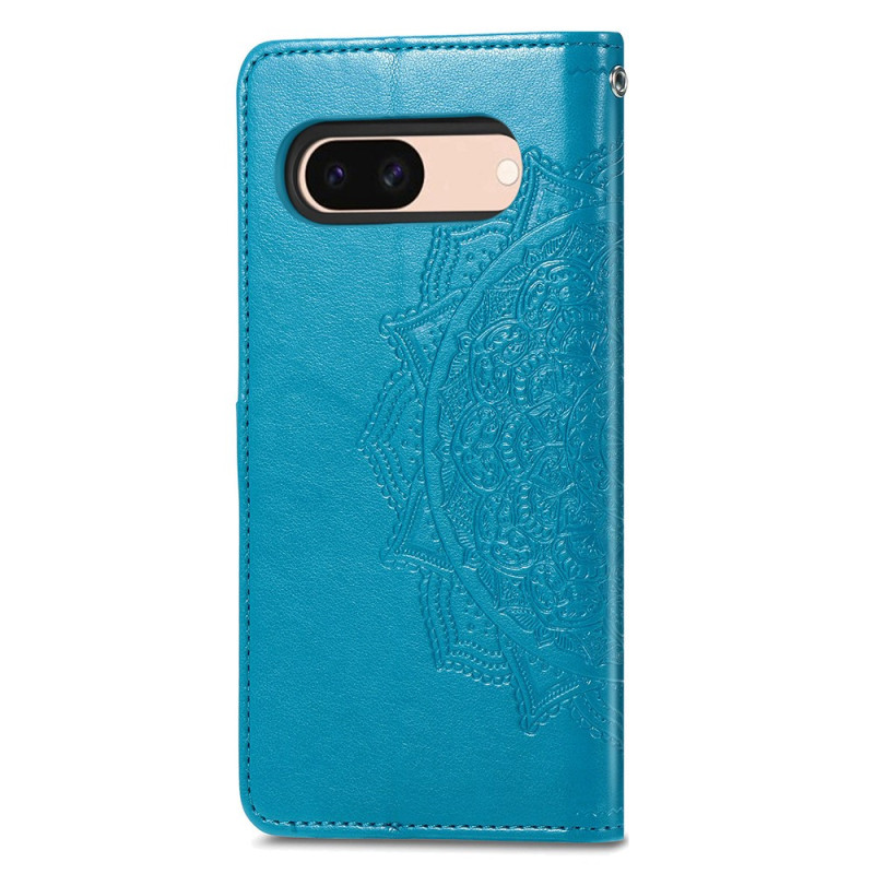 Tutustu lompakkokoteloon Google Pixel 8A:lle, jossa on kohokuvioitu mandala-kukkakuvio.