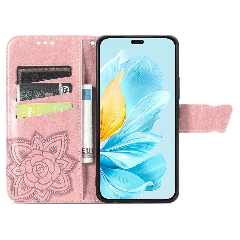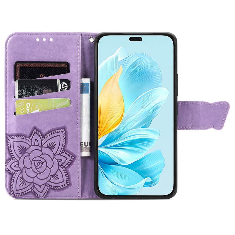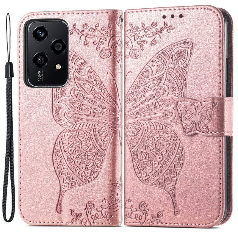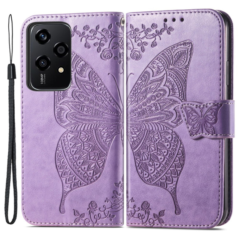 Tutustu huippuluokan PU-nahkaiseen puhelinsuojukseen Honor 200 Lite -puhelimelle, jossa on suuri painettu perhonen.