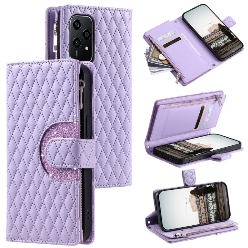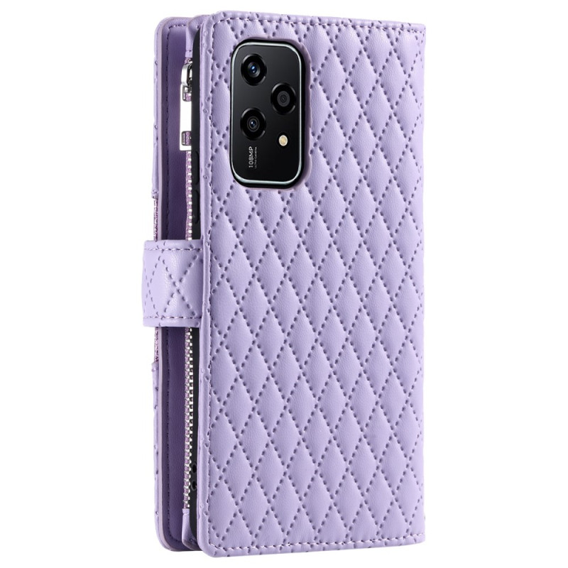 Tutustu Honor 200 Lite -koteloon, jossa on tikattu kuvio ja joka on suunniteltu sekä toimivaksi että tyylikkääksi.