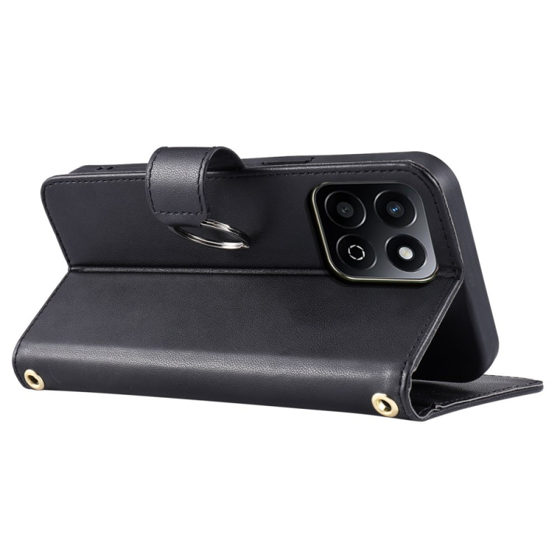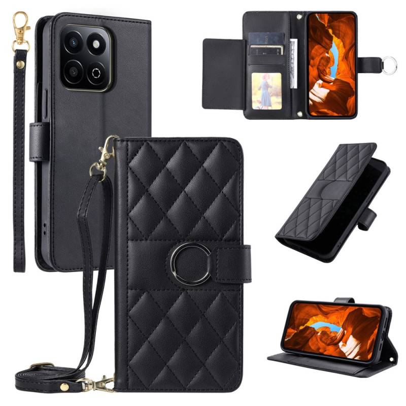 Tyylikäs nahkalompakko, jossa on hienostunut timanttikuvio. Lompakossa on ensiluokkainen lukkorengas, 5 korttipaikkaa, kolikkotasku ja taitettava jalusta. Toimitetaan kahdella olkahihnalla käsin tai olan yli kantamista varten.