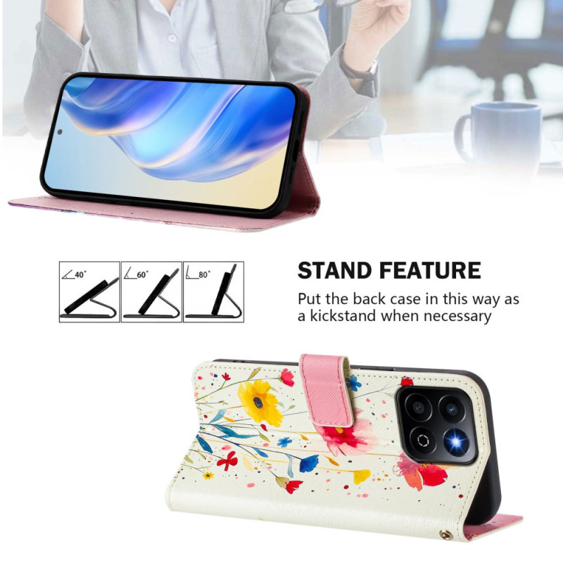 Suojaa Honor X7c 5G / 4G / 200 Smart 5G -puhelimesi tyylikkäästi tällä tyylikkäällä kukkakuvioisella lompakkokotelolla. Siinä on säädettävä monikulmainen pidike, 3 korttipaikkaa ja turvallinen rannehihna, joten se on täydellinen yhdistelmä toiminnallisuutta ja tyyliä.