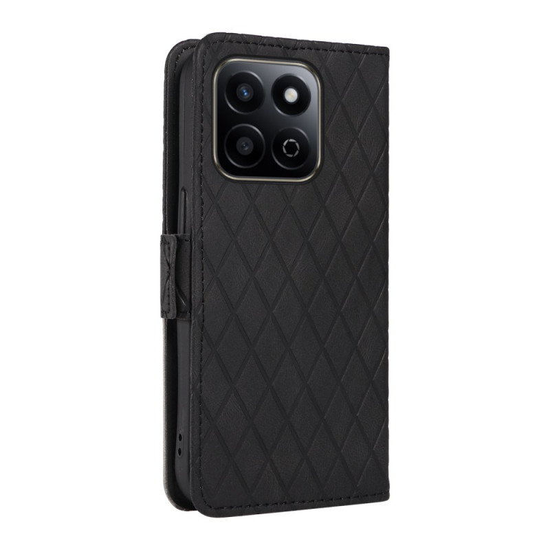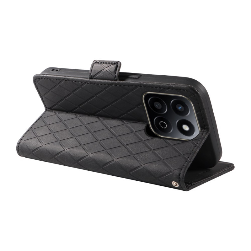 Suojaa Honor X7c 4G / 200 Smart 5G -puhelimesi tyylikkäästi tällä hienostuneella lompakkokotelolla. Sen timanttitikattoisessa muotoilussa yhdistyvät tyyli ja käytännöllisyys, 3 korttipaikkaa, sivussa oleva käteislokero ja integroitu jalusta-toiminto.