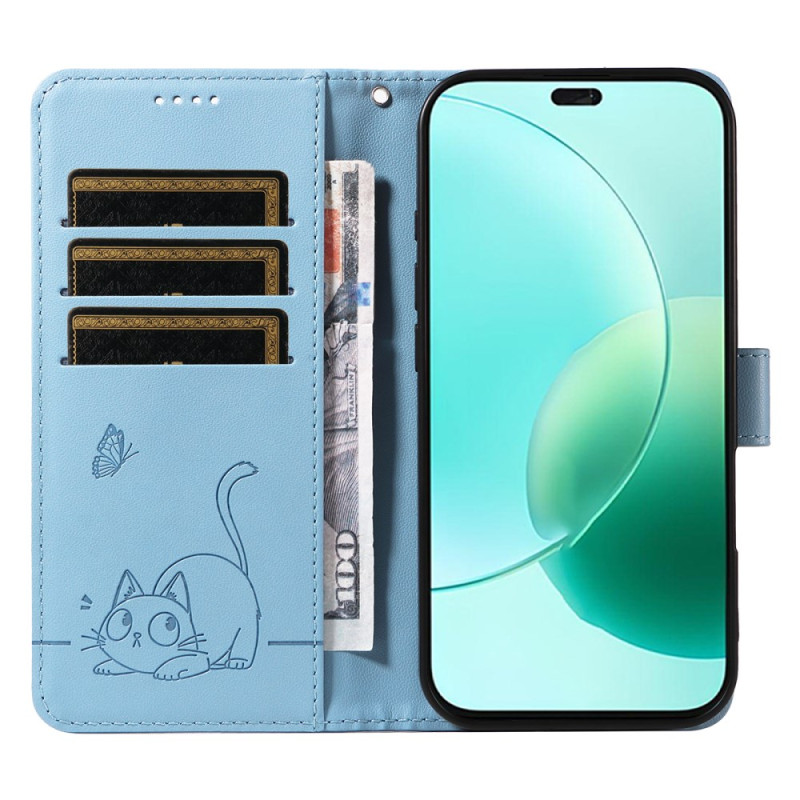 Tutustu tyylikkääseen lompakkokoteloon Honor 400 Lite -puhelimelle. Siinä on onnekas kissakuvio, kolme korttipaikkaa ja muistiinpanotasku, ja siinä yhdistyvät toiminnallisuus ja tyyli.