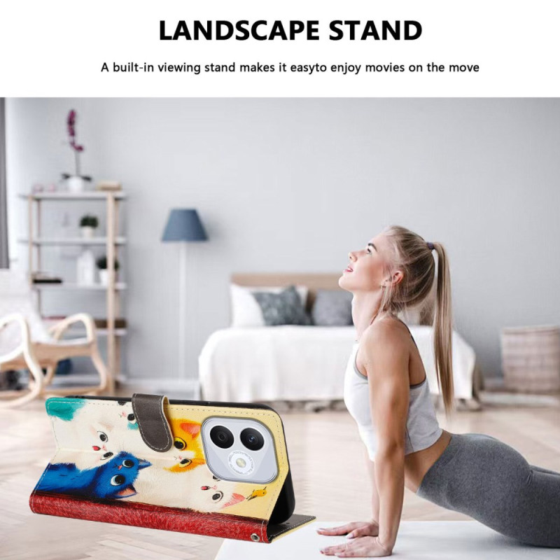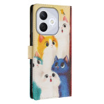 Suojaa puhelimesi tyylikkäästi tällä tyylikkäällä lompakkokotelolla, jota koristavat värikkäät kissat. Siinä on korttilokerot, säädettävä jalusta ja käytännöllinen rannehihna, joten se on täydellinen yhdistelmä suojaa ja käytännöllisyyttä arjessa.