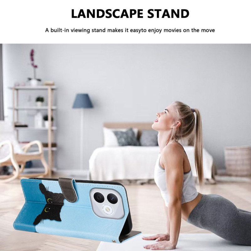 Suojaa Honor 400 Lite 5G -puhelimesi tyylikkäästi tällä tyylikkäällä mustalla kissakuvioisella lompakkokotelolla. Magneettisella foliomuotoilulla varustetussa kotelossa on 2 korttipaikkaa, 1 lipputasku ja säädettävä jalusta-toiminto.