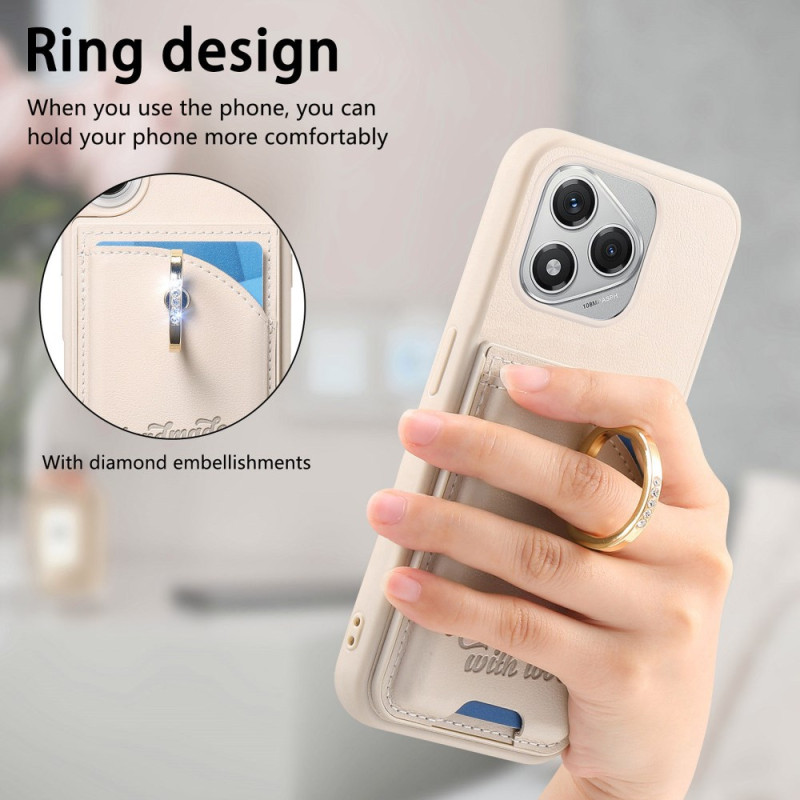 Suojaa Honor 400 Lite 5G -puhelimesi tyylikkäästi tällä monitoimikotelolla. Kotelossa on käytännöllinen korttipidike, 360° kääntyvä rengas, jota koristavat strassit ja joka toimii jalustana, sekä turvallinen ote tinkimättömään jokapäiväiseen käyttöön.
