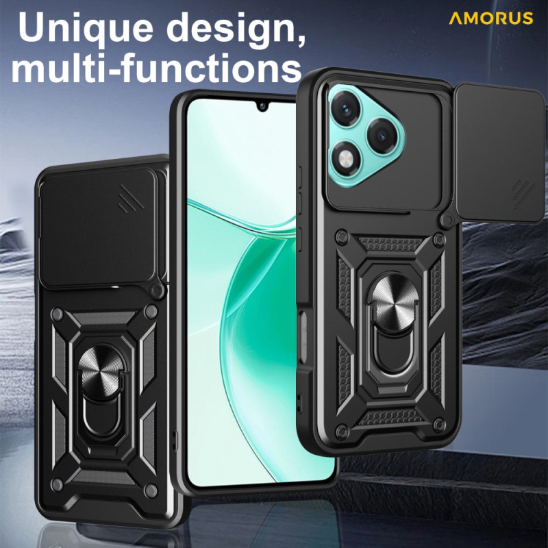 Suojaa Honor 400 Lite 5G -puhelimesi tyylikkäästi tällä kestävällä AMORUS-kotelolla. Kotelossa on kääntyvä potkulaite hands-free katseluun, sotilasluokan iskusuojaus ja innovatiivinen liukuva kamerasuoja.