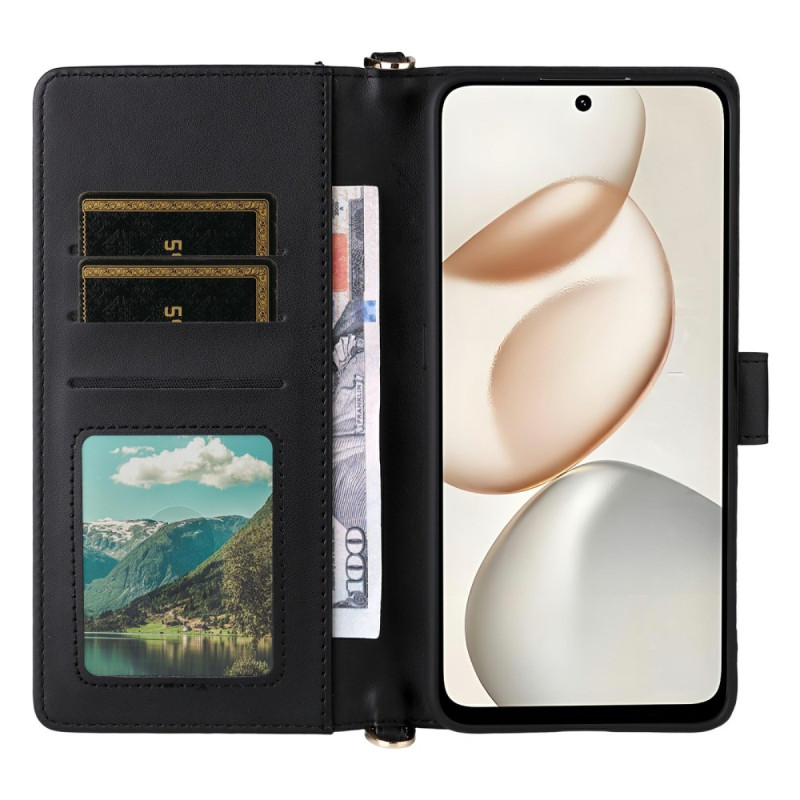 - Turvallinen magneettisuljenta: Varustettu tukevalla magneettilukolla, joka pitää puhelimesi, korttisi ja rahasi paikoillaan ja takaa samalla helpon pääsyn.