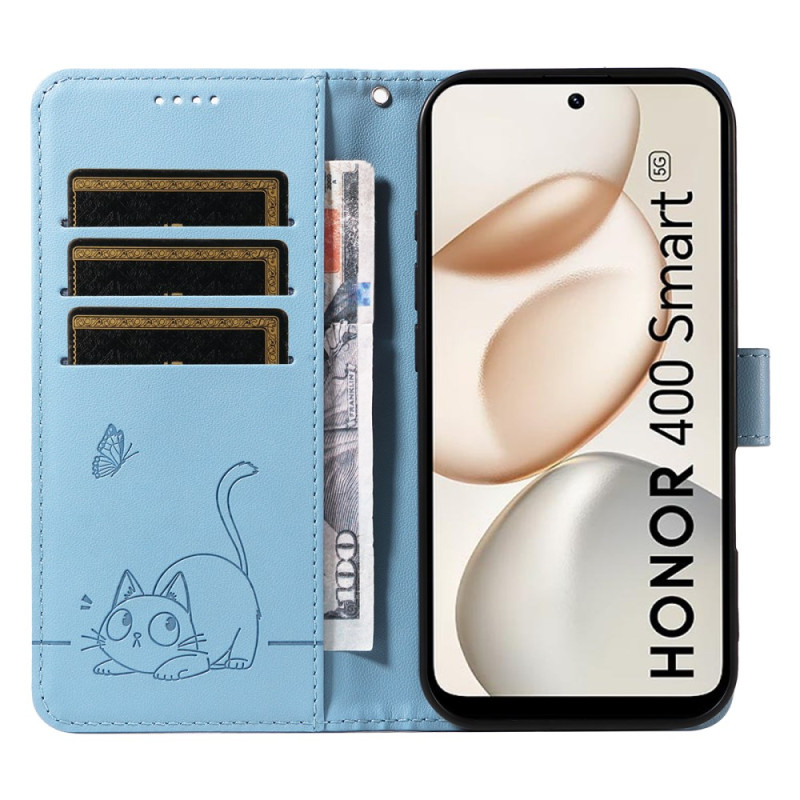 Tutustu monikäyttöiseen lompakkokoteloon Honor 400 Smart 4G:lle. Tässä kotelossa on kolme korttipaikkaa, rahatasku ja turvallinen magneettisuljenta, ja siinä yhdistyvät käytännöllisyys ja suojaus. Sen tyylikäs muotoilu onnekkaalla kissakuvioinnilla ja irrotettava rannehihna tekevät siitä täydellisen lisävarusteen älypuhelimellesi.