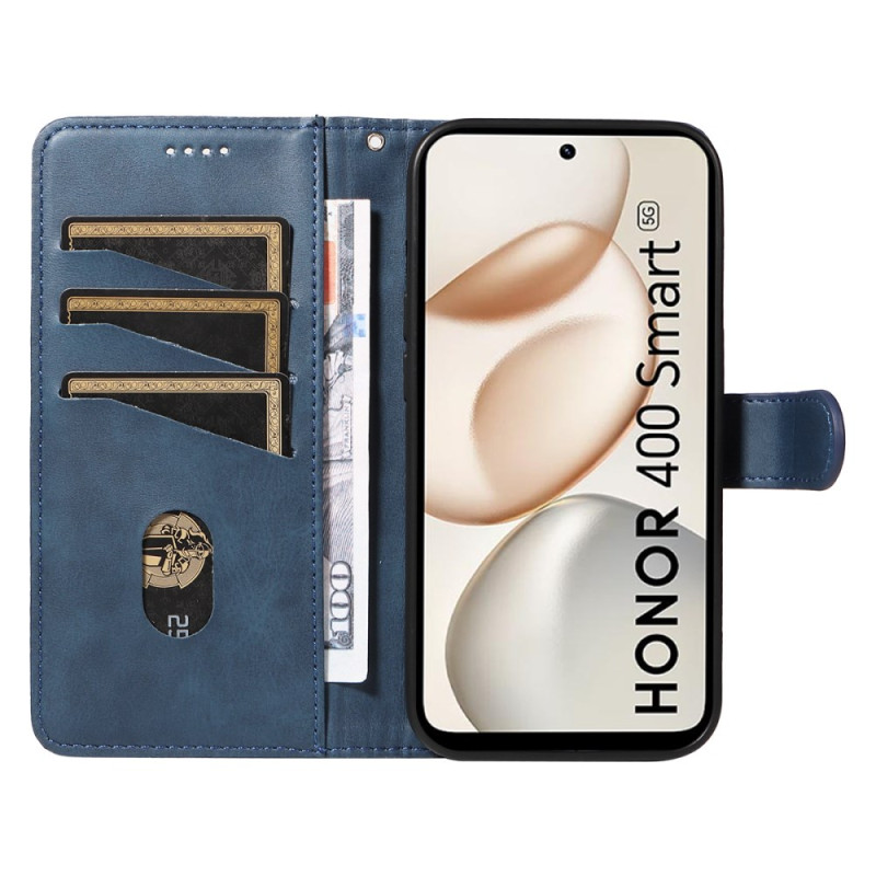 Tutustu tyylikkääseen ja toimivaan lompakkokoteloon Honor 400 Smart 5G / 4G -puhelimelle. Laadukkaasta kuvioidusta PU-nahasta ja mattapintaisesta TPU:sta valmistettu suojakuori tarjoaa täydellisen suojan ja miellyttävän tuntuman. Painettujen T-viivojen, korttipaikkojen, integroidun pidikkeen ja magneettisulkimen ansiosta tässä kotelossa yhdistyvät tyyli ja käytännöllisyys optimaaliseen päivittäiseen käyttöön.