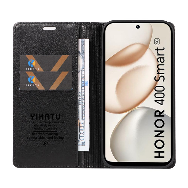 Tutustu tyylikkääseen ja toimivaan lompakkokoteloon Honor 400 Smart 5G / 4G -puhelimelle. Se on valmistettu korkealaatuisesta PU-nahasta, jossa on kuvioitu viimeistely, ja se tarjoaa täydellisen suojan ja käytännöllisen säilytystilan korteillesi ja rahoillesi. Sen hienostunut muotoilu ja magneettisuljenta tekevät siitä täydellisen lisävarusteen älypuhelimellesi.