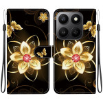 Elegantti PU nahkakotelo kultainen kukka design Honor 400 Smart 5G / 4G. Integroitu jalusta-toiminto, turvallinen magneettisuljenta, korttitaskut ja lompakkolokero. Mukana irrotettava kantolenkki kätevää kuljettamista varten.