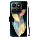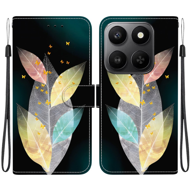 Tyylikäs lompakkokotelo PU-nahkaa, jossa on värikäs lehtikuvio. Integroitu jalusta-toiminto handsfree-katseluun. Sisältää 2 korttipaikkaa, sivulokeron ja turvallisen magneettisulkimen. Toimitetaan avaimenperän kanssa.