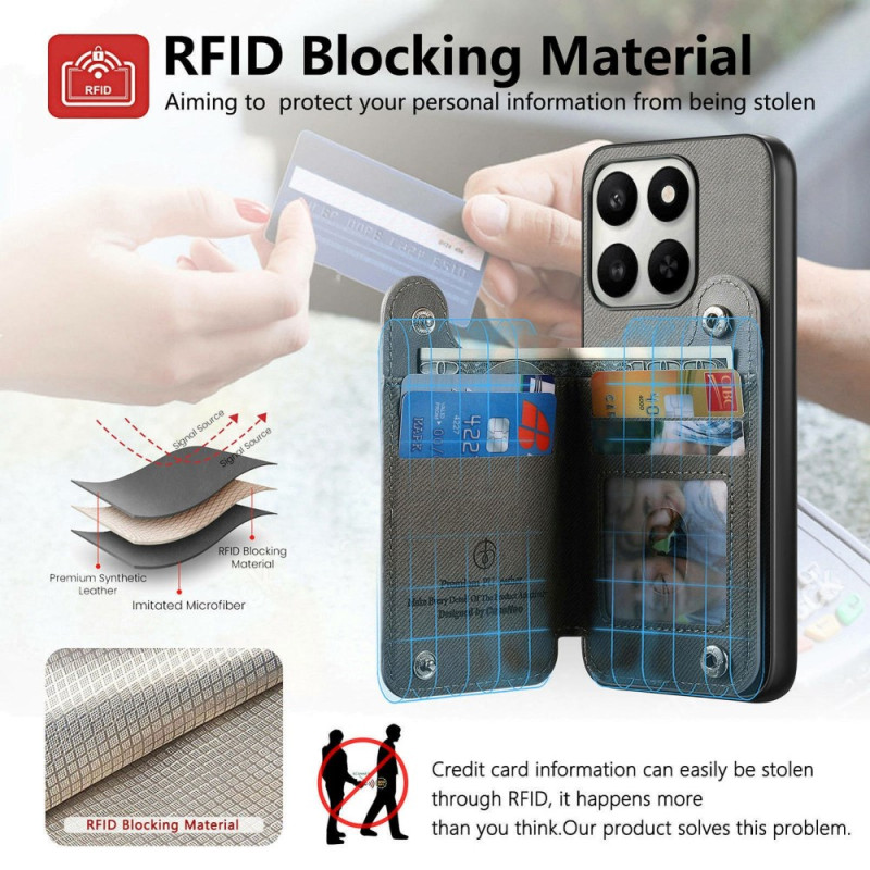 Monitoimikotelo nahka, TPU ja PC Honor 400 Smart 5G / 4G / X7d 5G / 4G. Sisältää RFID-korttipaikat 4 kortille, säädettävän jalustan, 360° pyörivän renkaan ja vankan suojan. Tyylikäs kuvioitu muotoilu, jossa napsautussuljin helppokäyttöisyyttä varten.
