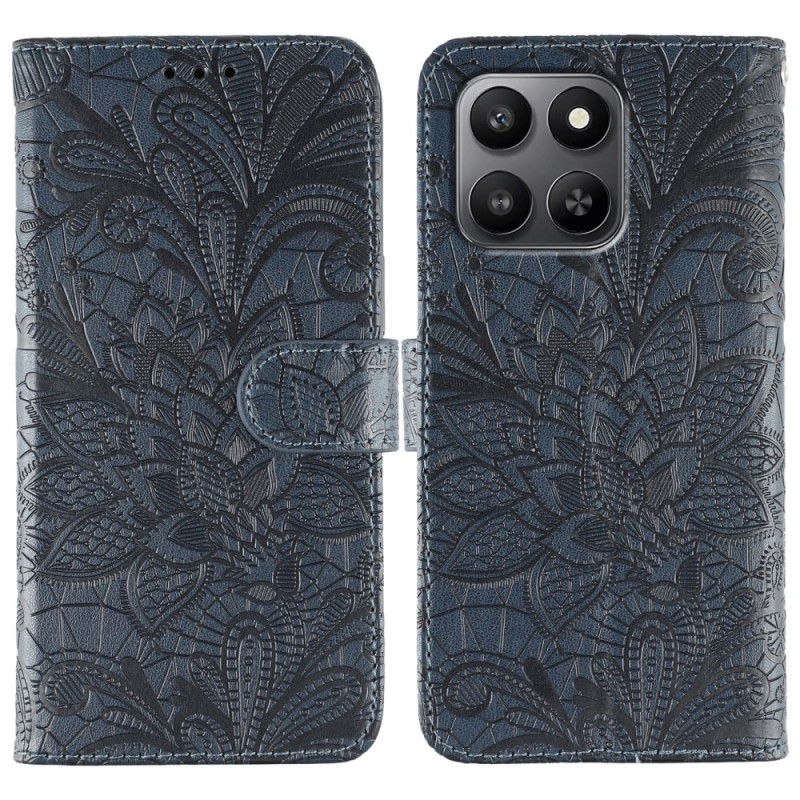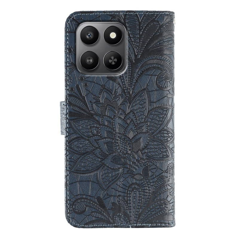 Tyylikäs lompakkokotelo, jossa on läppä ja pitsinen kukka-aihe Honor 400 Smart 5G / X7d 5G / 4G -puhelimeen. Hienostunut muotoilu ja optimaalinen suoja, jossa on korttipaikat, integroitu pidike ja käytännöllinen käsihihna yksinkertaistettuun jokapäiväiseen käyttöön.