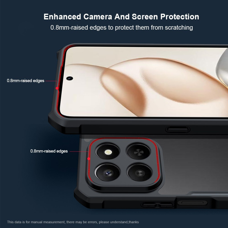 Suojaa Honor 400 Smart 5G / X7d 4G -puhelimesi tyylikkäästi tällä erittäin kestävällä suojakuorella , jossa yhdistyvät jäykkä akryyli ja joustava runko. Sen airbag-teknologia vaimentaa iskuja, ja korotetut reunukset suojaavat näyttöä ja kameraa.
