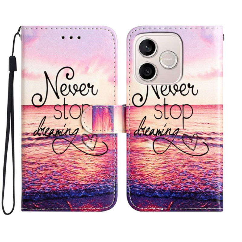 Tulet rakastamaan tätä lompakkokoteloa, jonka painettu "Never Stop Dreaming" -malli on suunniteltu korostamaan Honor 600 Lite 5G -puhelintasi.