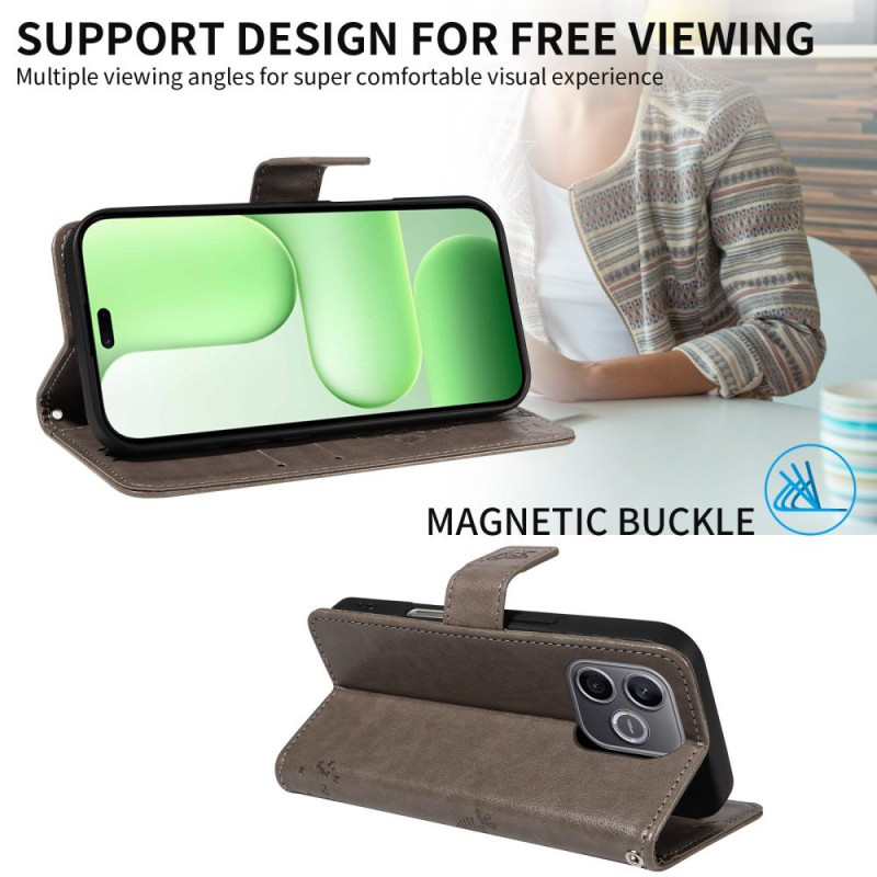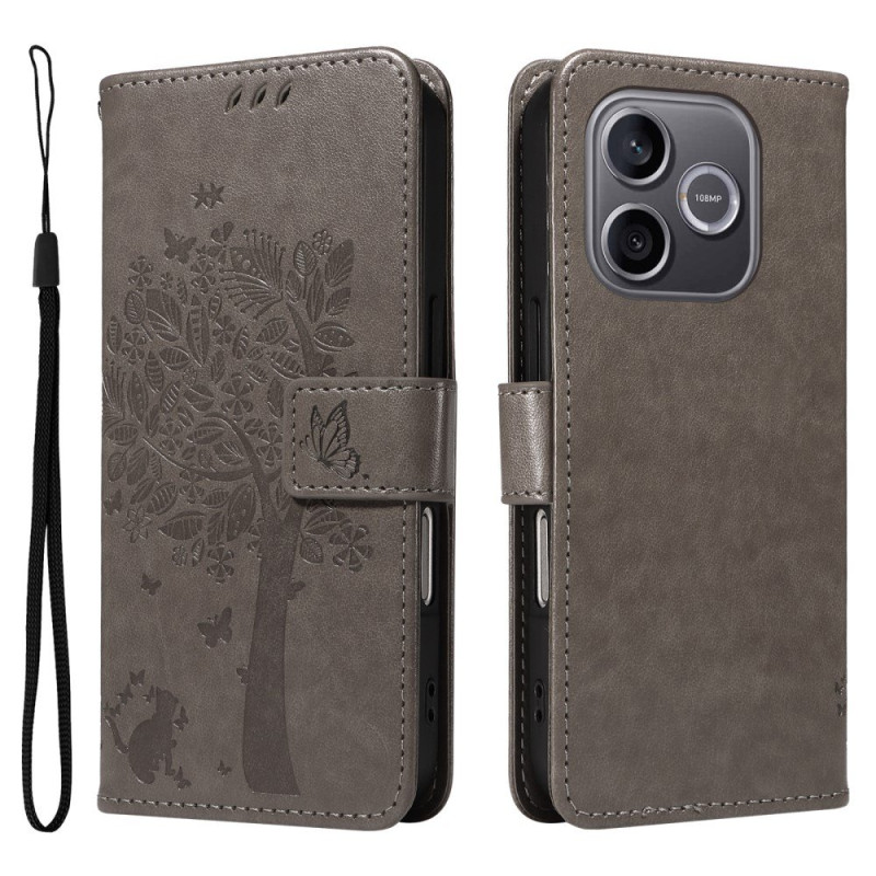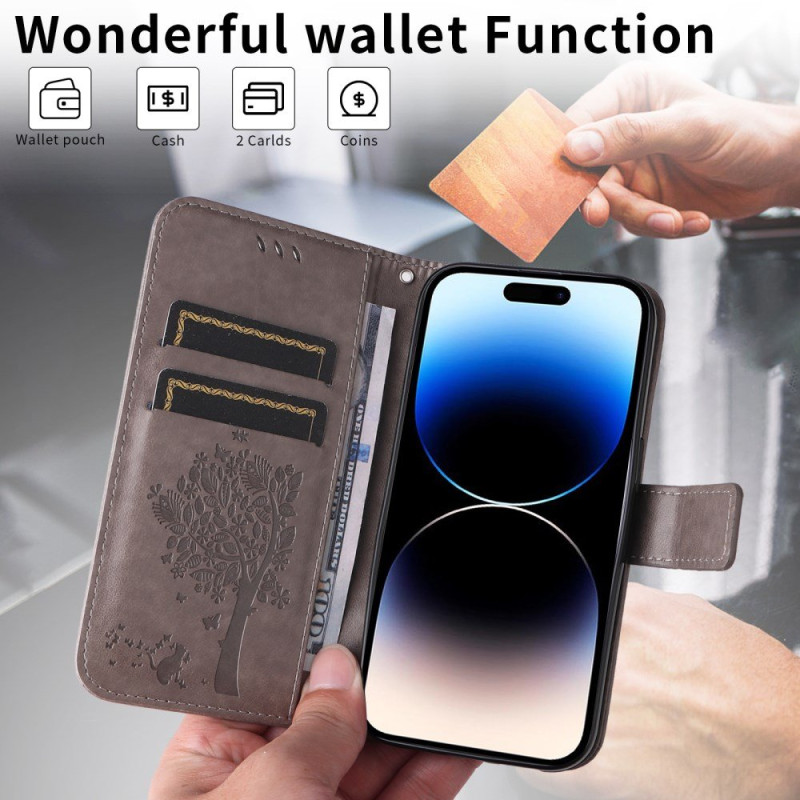 Suojaa Honor 600 lite 5G -puhelimesi tällä tyylikkäällä lompakkosuojalla, jossa on kissa- ja puuaihe.