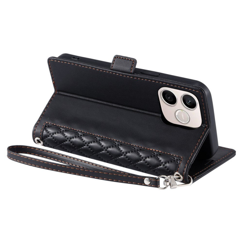 Tässä Honor 600 Lite 5G -puhelimen lompakkosuojakuoressa yhdistyvät tyyli ja toiminnallisuus, ja siinä on timanttikuvio ja houkutteleva muotoilu.