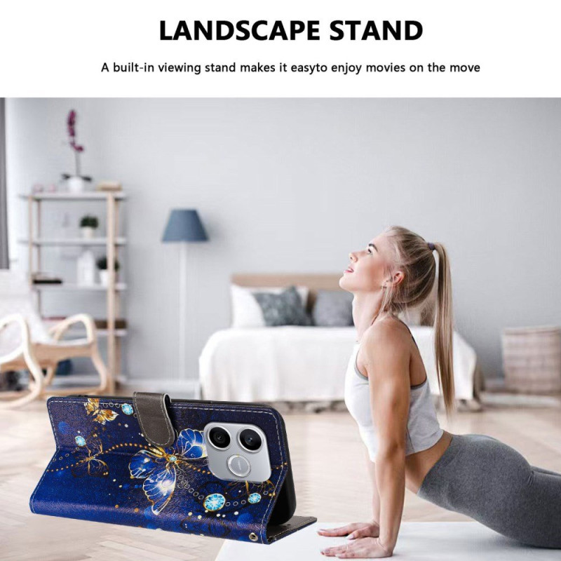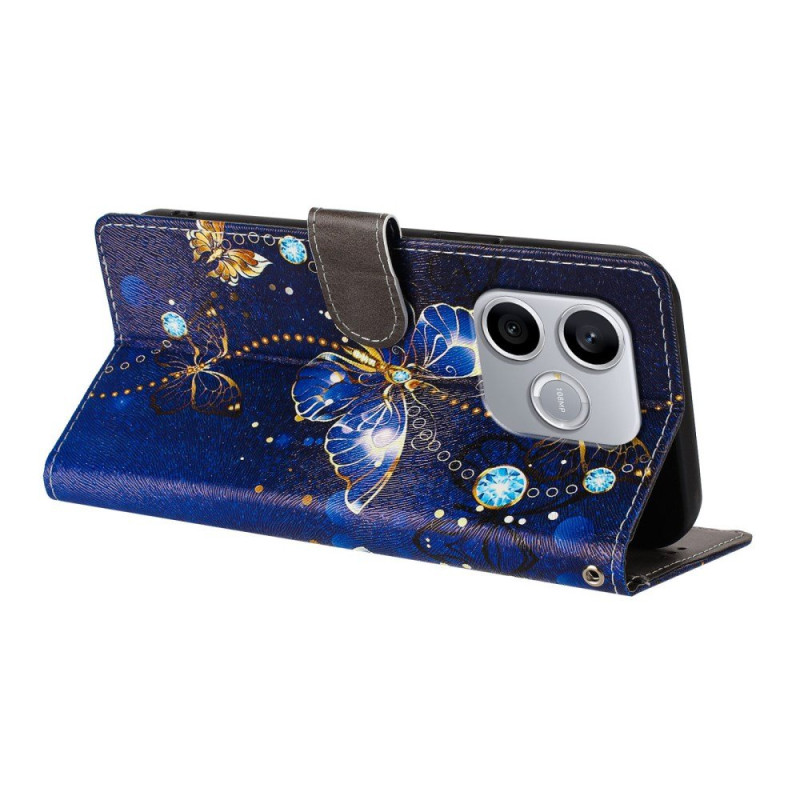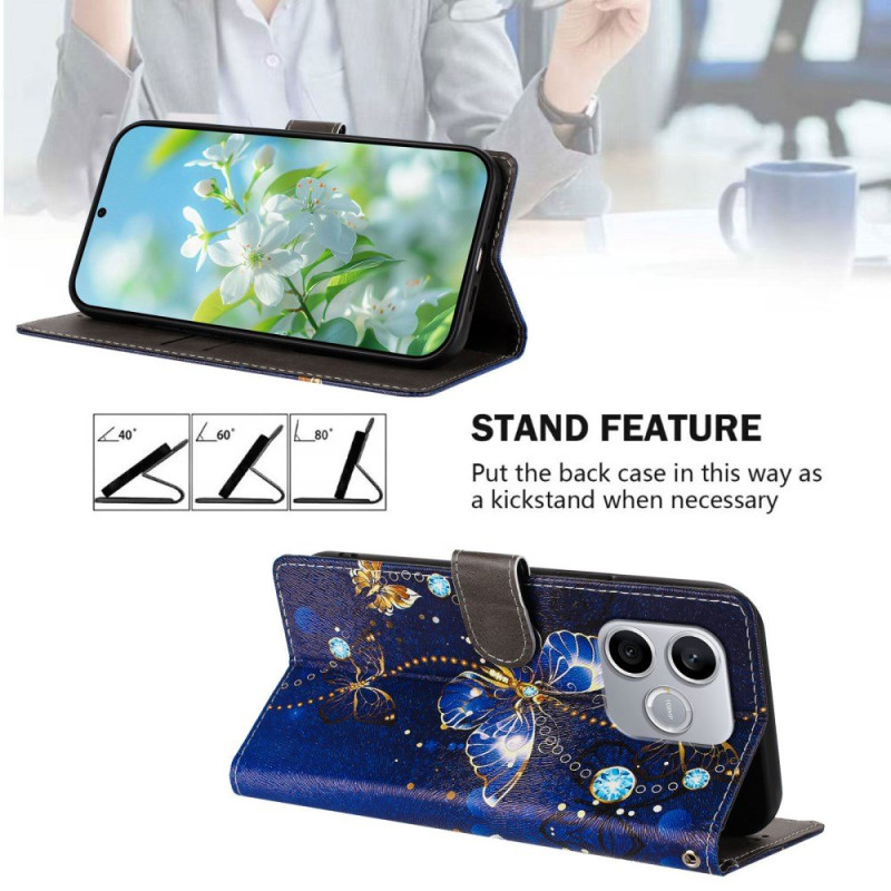Tulet rakastamaan tätä lompakkosuojakuorta, jossa on sininen perhoskuvio, joka on suunniteltu parantamaan Honor 600 Lite 5G -puhelintasi.