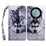 Laadukas lompakkosuojakotelo Honor Magic 5 Lite 5G / X9a -puhelimelle, jota koristaa upea husky.