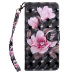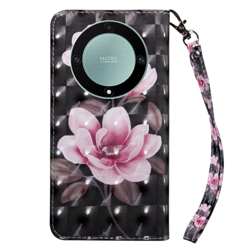 Tässä tyylikkäässä puhelinsuojassa Honor Magic 5 Lite 5G / X9a -puhelimelle on vaaleanpunainen 3D-kukkakuvio ja hihna.