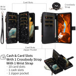 Tyylikäs monitoimikuori , jossa yhdistyvät vahvistettu suojaus ja käytännöllisyys. Sisältää 10 korttipaikkaa, vetoketjullisen taskun ja irrotettavat hihnat, joiden avulla voit kuljettaa matkalaukkua kädet vapaana. Hohdokas glitterviimeistely ja integroitu kokoontaitettava jalusta.