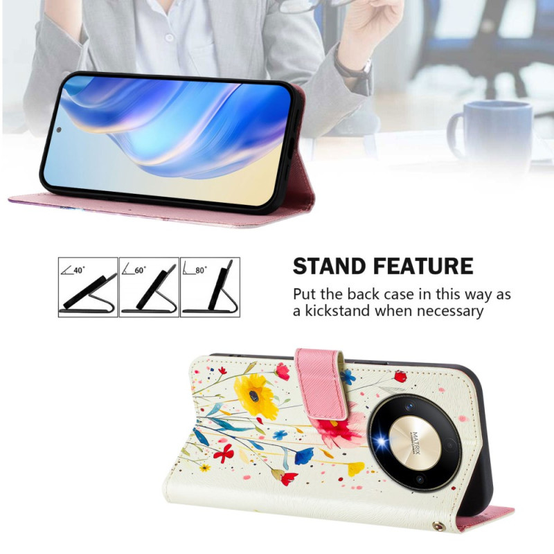 Suojaa Honor Magic 6 Lite / X9b -puhelimesi tyylikkäästi tällä tyylikkäällä lompakkokotelolla, jossa on kukka-aihe. Siinä on säädettävä monikulmainen pidike, 3 korttipaikkaa ja turvallinen rannehihna, ja siinä yhdistyvät toiminnallisuus ja hyvä ulkonäkö.