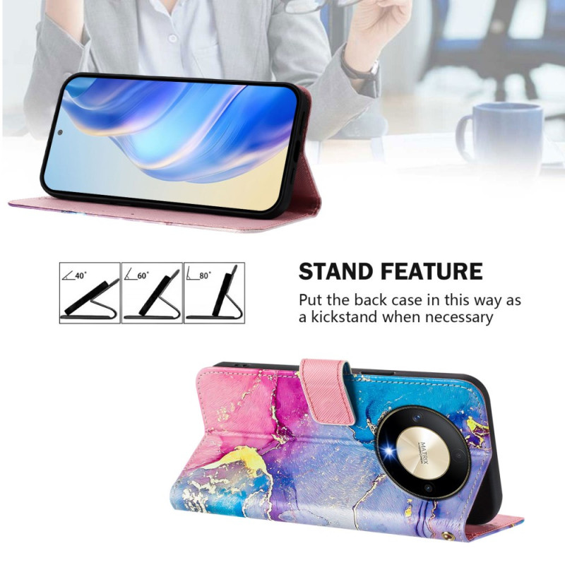 Suojaa Honor Magic 6 Lite / X9b -puhelimesi tyylikkäästi tällä tyylikkäällä lompakkokotelolla, jossa on monivärinen marmorikuvio. Siinä on säädettävä monikulmainen pidike, 3 korttipaikkaa ja turvallinen rannehihna, ja siinä yhdistyvät toiminnallisuus ja suojaus.