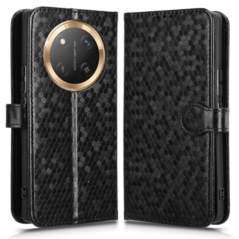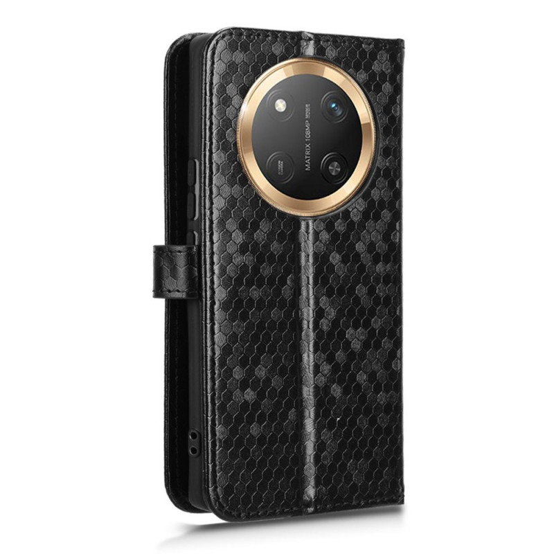 Tutustu tyylikkääseen lompakkokoteloon Honor Magic 7 Lite / X9c. Laadukkaasta PU-nahasta painetulla pilkkukuviolla valmistettu suojakuori