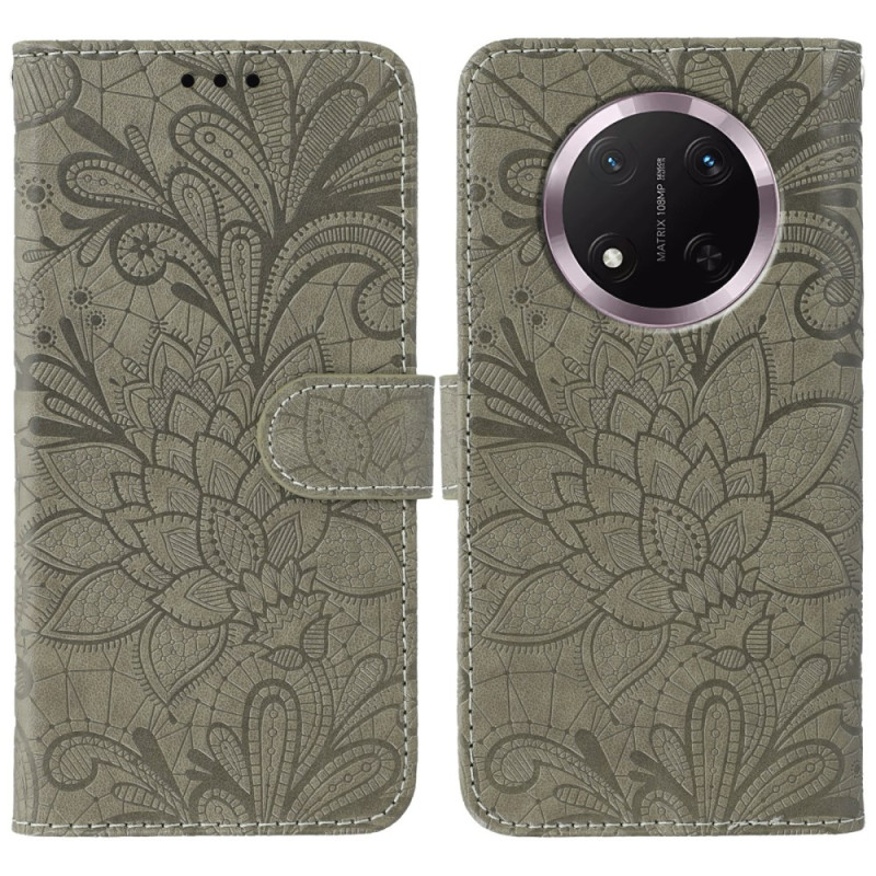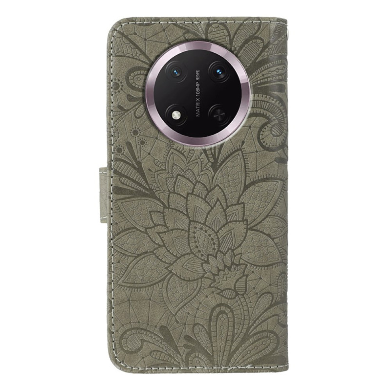 Tutustu tyylikkääseen koteloon Honor Magic 7 Lite / X9c, jossa on pitsinen kukkakuvio. Laadukkaasta PU-nahasta valmistettu ja TPU-sisäkuorella varustettu suojakotelo tarjoaa vankan suojan ja tuo samalla puhelimeesi ripauksen hienostuneisuutta.