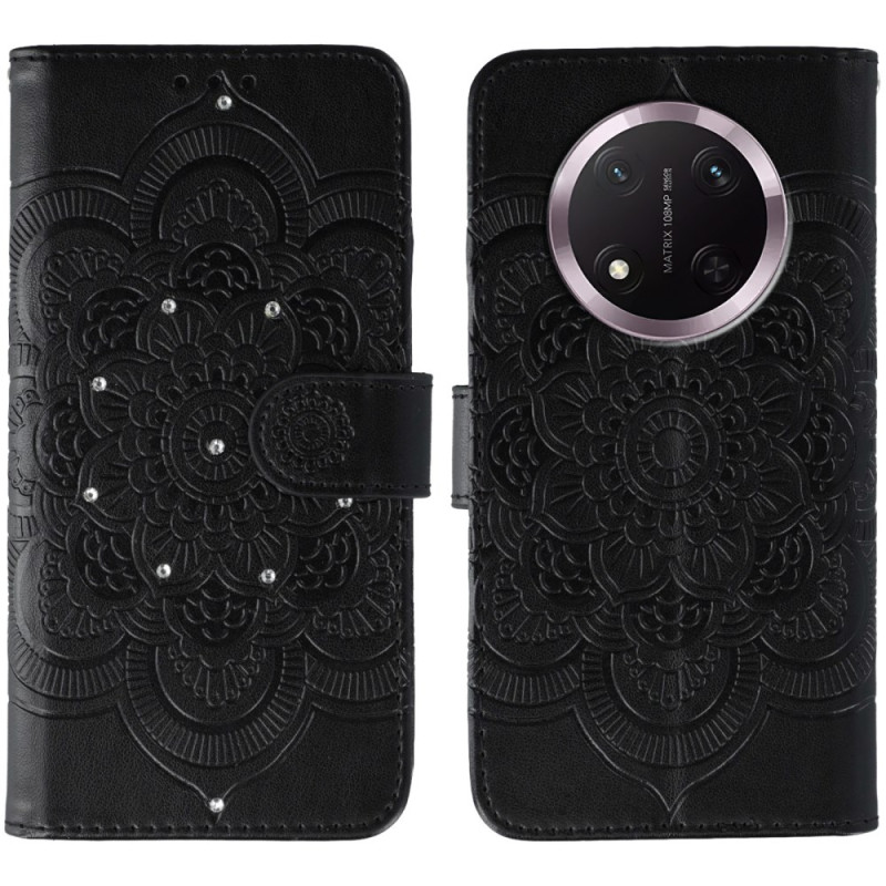 Suojaa Honor Magic 7 Lite / X9c -puhelimesi tyylikkäästi tällä hienostuneella suojakuorella , jossa on painettu mandala-aihe ja kimaltelevia strasseja. Kortti- ja rahalokerot, jalusta-toiminto ja käytännöllinen käsihihna yhdistävät tyylin ja jokapäiväisen toiminnallisuuden.
