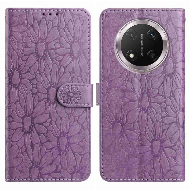 Tyylikäs lompakkokotelo, jossa on kohokuvioitu päivänkakkaramotiivi Honor Magic 7 Lite / X9c -puhelimelle. Siinä on 3 korttipaikkaa ja 1 setelilokero, ja siinä yhdistyvät tyyli ja toiminnallisuus. Mukana integroitu handsfree-pidike ja rannehihna helppoa kantamista varten.