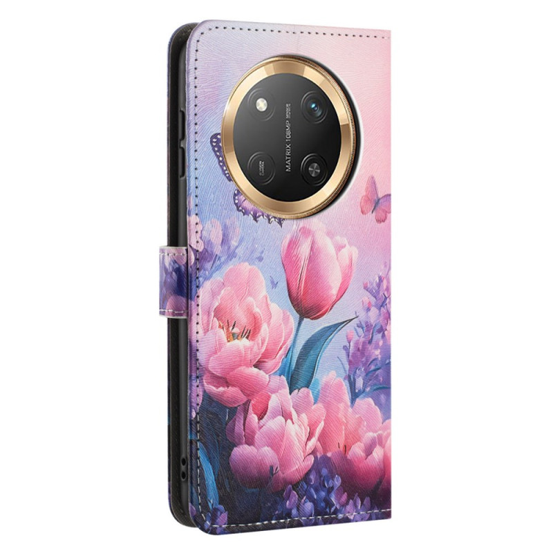 Suojaa Honor Magic 7 Lite / X9c -puhelimesi tyylikkäästi tällä lompakkokotelolla, jossa on kukka-aihe ja vaaleanpunaisia perhosia. Käytännöllinen muotoilu, jossa on integroitu korttipidike, taitettava jalusta ja magneettisuljenta. Mukana irrotettava kantolenkki helppoa kuljetusta varten.