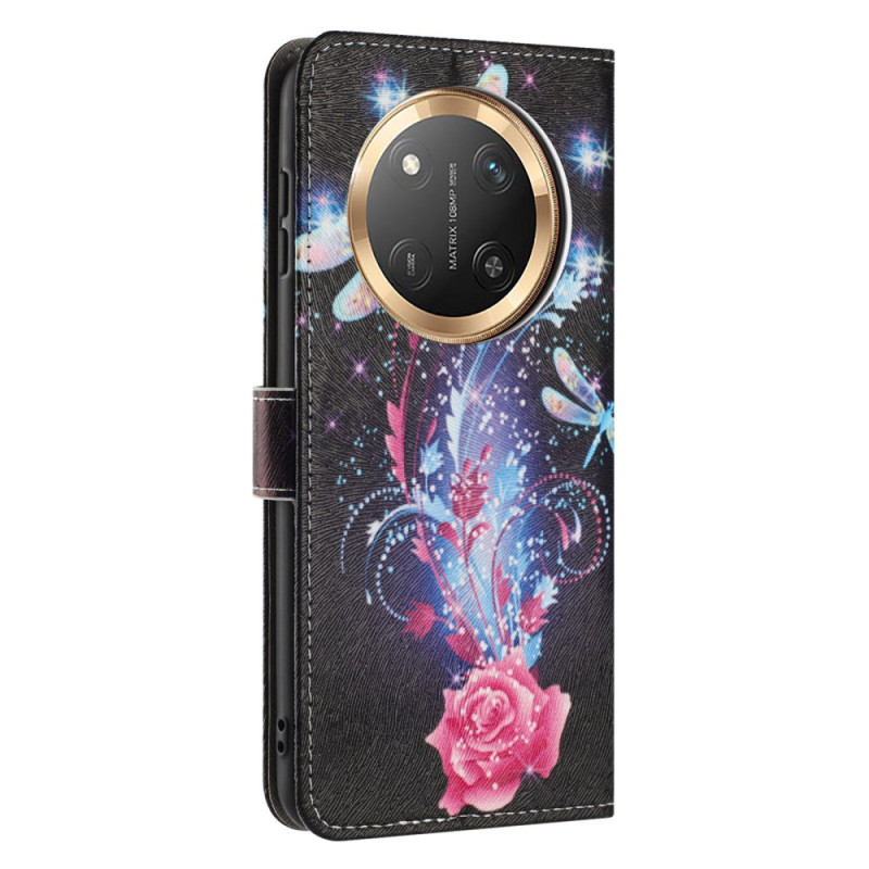 Suojaa Honor Magic 7 Lite / X9c -puhelimesi tyylikkäästi tällä lompakkokotelolla, jossa on hienostunut sudenkorentoaihe. Siinä on lokerot korteille ja käteiselle, kokoontaitettava jalusta ja käytännöllinen magneettisuljenta, joten siinä yhdistyvät tyyli ja toiminnallisuus.