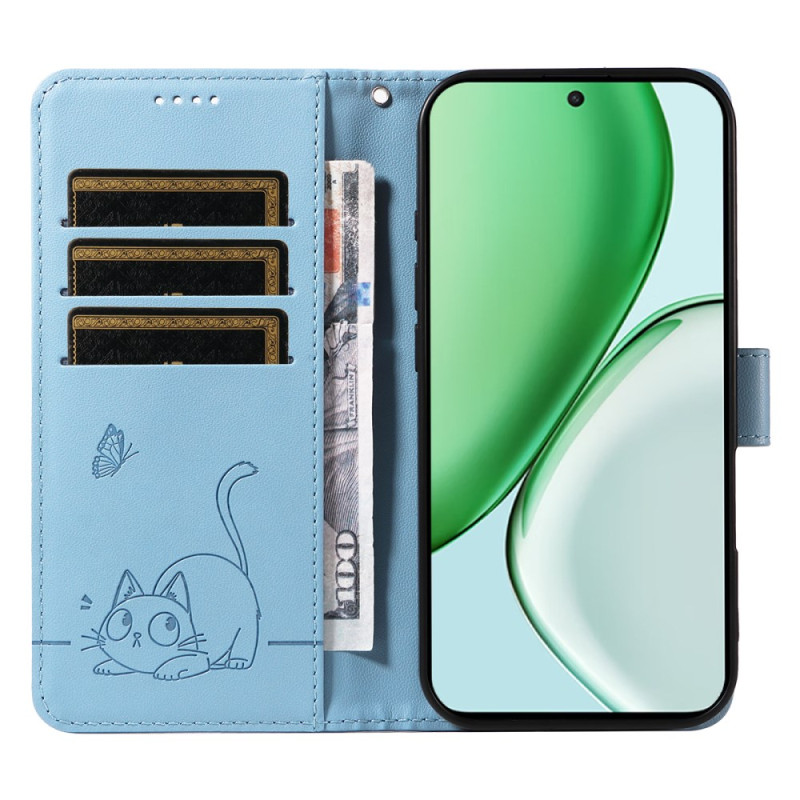 Elegantti lompakko suojakotelo Honor Magic 8 Lite onnekas kissa motiivi. Monikäyttöinen muotoilu, jossa on 3 korttipaikkaa, rahatasku ja käytännöllinen käsihihna. Turvallinen magneettisuljenta ja täysi suoja.