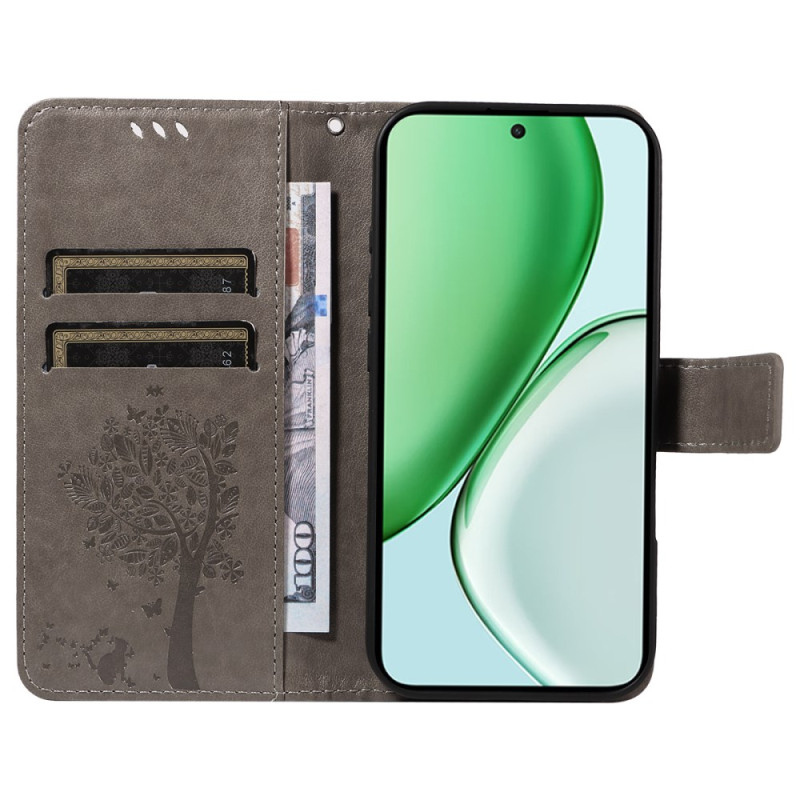 Suojaa Honor Magic 8 Lite -puhelimesi tyylikkäästi tällä monikäyttöisellä lompakkokotelolla. Siinä on hienostunut kissa- ja puuaihe, ja siinä on lokerot korteille, integroitu pidike ja käytännöllinen käsihihna optimaalista jokapäiväistä käyttöä varten.