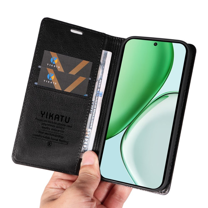 Suojaa Honor Magic 8 Lite -puhelimesi tyylikkäästi tällä tyylikkäällä lompakkokotelolla. Siinä on käytännölliset lokerot korteille ja rahoille, hienostunut lychee-kuosi ja turvallinen magneettikiinnitys.