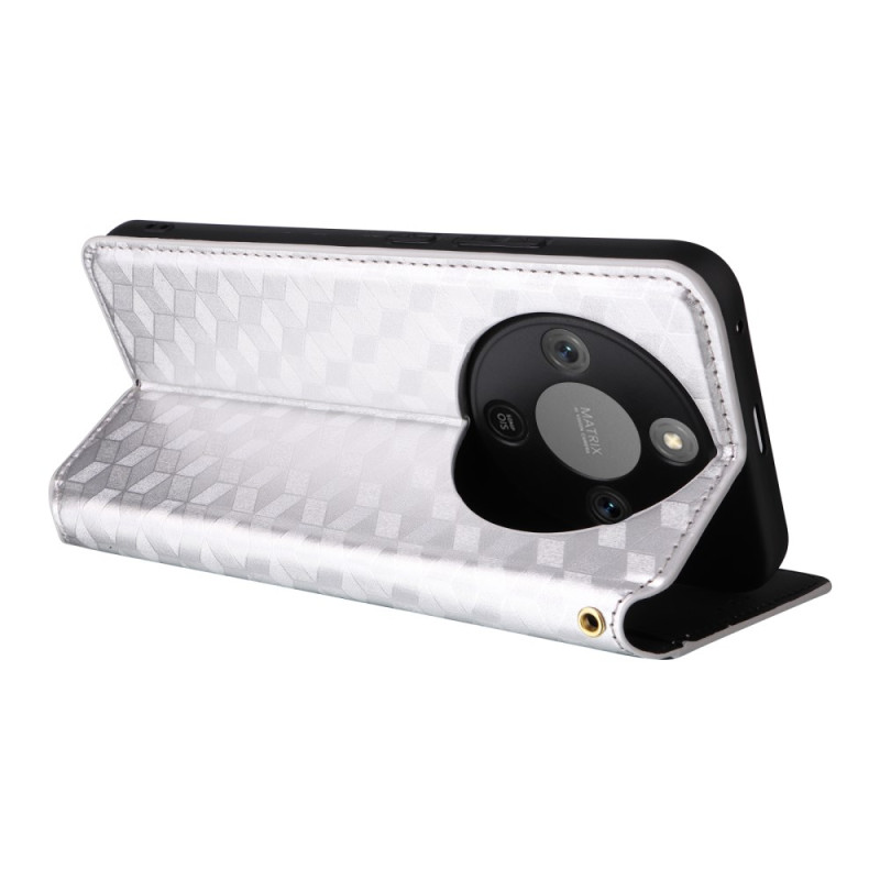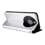 Tyylikäs lompakkokotelo PU-nahasta, jossa on kaiverrettu 3D-timantti. Hienostunut muotoilu, jossa yhdistyvät tyyli ja toiminnallisuus, integroitu korttipidike, handsfree-toiminto ja magneettisuljenta. Täydellinen 360°-suoja kolhuilta ja naarmuilta.