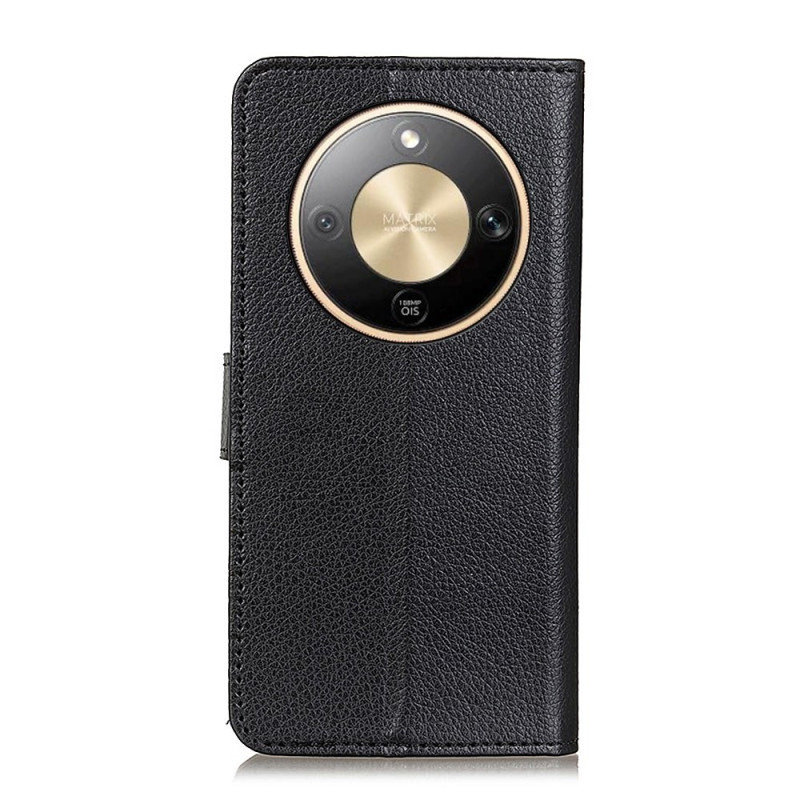 Elegantti lompakkokotelo PU-nahkaa lychee rakenne Honor Magic 8 Lite 5G. Kotelossa on 3 korttipaikkaa, sivulokero, turvallinen magneettisuljenta ja integroitu jalusta-toiminto täydellistä ja käytännöllistä suojaa varten.