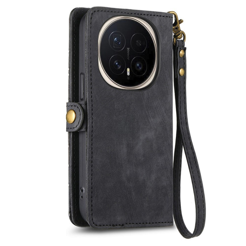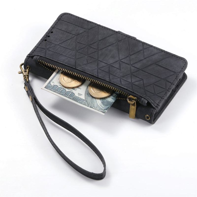 Monikäyttöinen lompakkokotelo premium PU-nahkaa vetoketjulla Honor Magic 8 Pro 5G. Tyylikäs geometrinen muotoilu, 3 korttipaikkaa, turvallinen vetoketjutasku ja integroitu jalusta-toiminto.