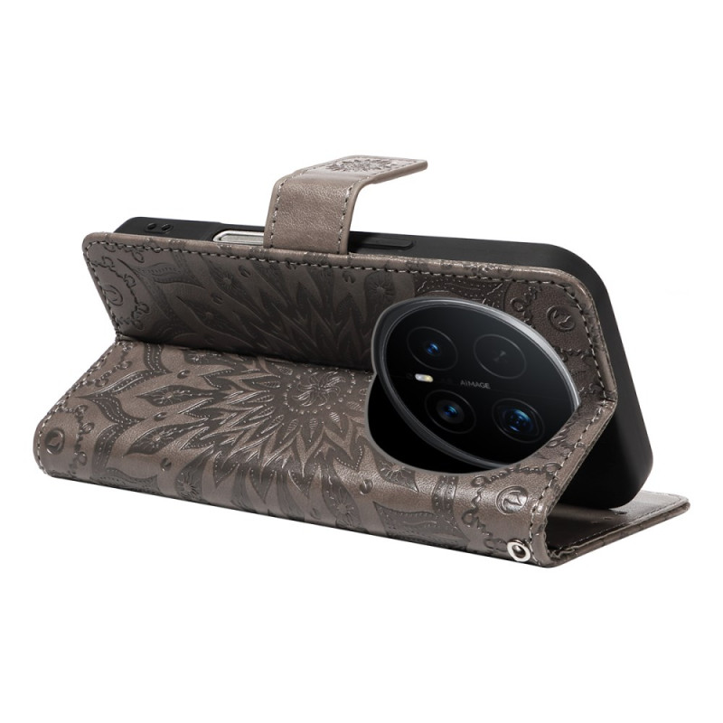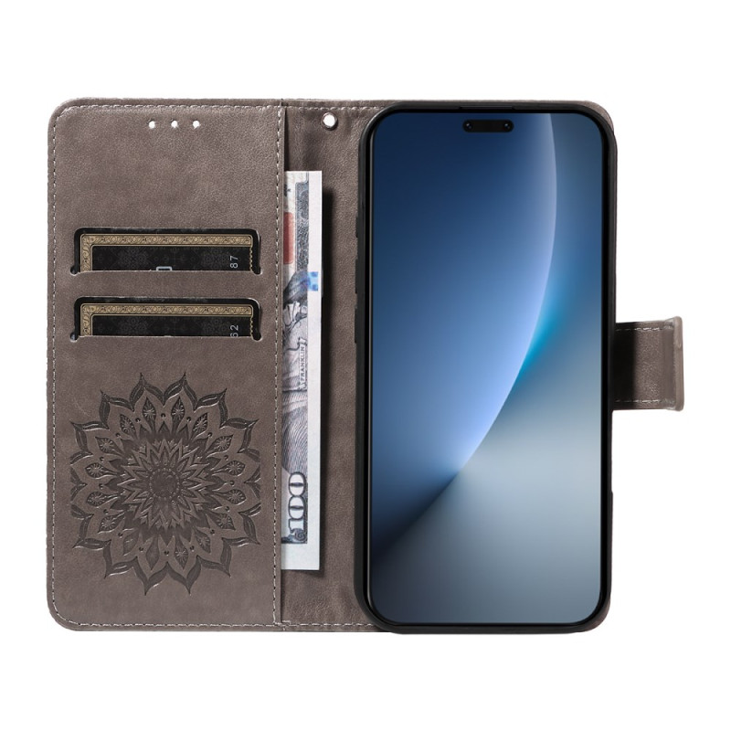 Tyylikäs lompakkokotelo korkealaatuisesta PU-nahasta, jossa on auringonkukan muotoilu 3D-reliefinä. Sisältää 2 korttipaikkaa, sivulokeron, handsfree-toiminnon ja käytännöllisen käsihihnan. Tukeva suoja mattapintaisella TPU-sisäkuorella.