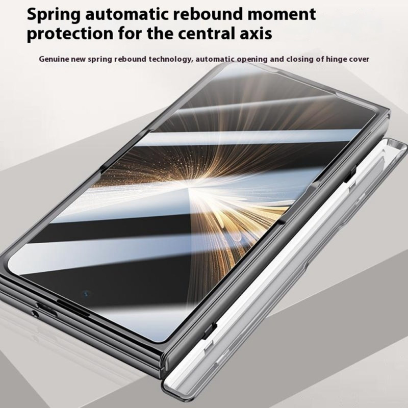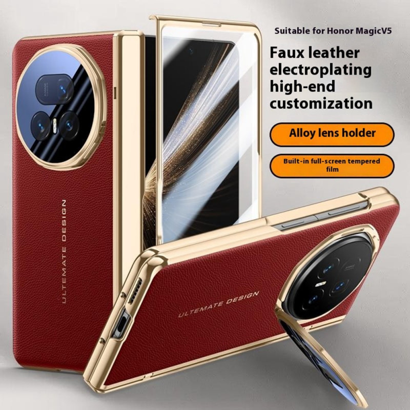 Tutustu Honor Magic V5 5G:n premium-suojakuoreen. Laadukkaasta PU-nahasta ja PC:stä valmistettu suojakuori tarjoaa kestävän ja tyylikkään suojan. HD-karkaistun lasikalvon ja integroidun jalustan ansiosta voit nauttia optimaalisesta visuaalisesta kokemuksesta ja mukavasta käytöstä.