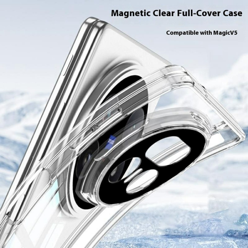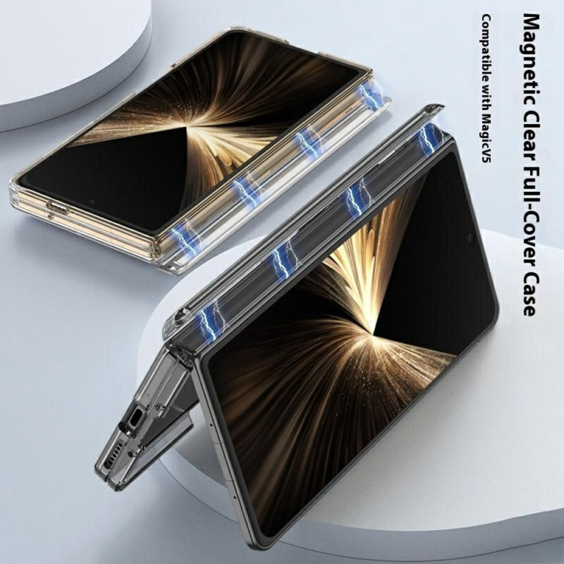 Tutustu Honor Magic V5 5G:n täydelliseen suojakuoreen. Kestävästä TPU-muovista valmistettu suojakuori tarjoaa täydellisen suojan putoamisia ja naarmuja vastaan säilyttäen samalla laitteesi alkuperäisen estetiikan. Sen magneettinen saranamuotoilu takaa täydellisen pidon ja suojaa taittomekanismia.