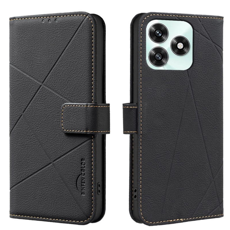 Protégez votre Honor X5c Plus avec élégance grâce à cet étui portefeuille en cuir PU premium. Design géométrique moderne, 3 emplacements pour cartes, technologie anti-RFID et support ajustable intégré pour une expérience mains libres optimale.