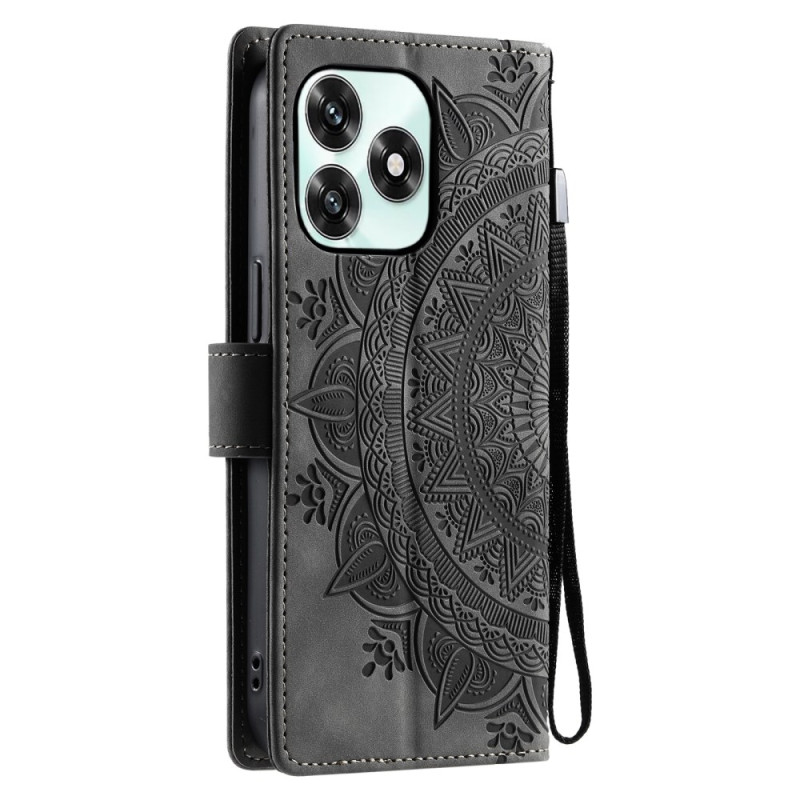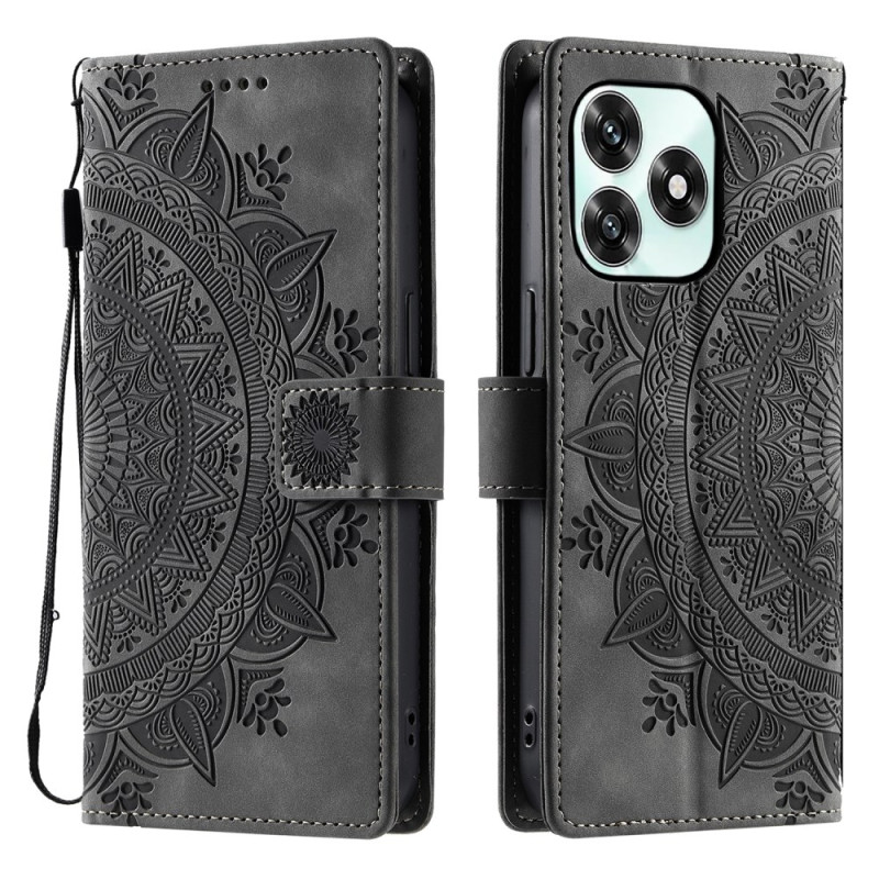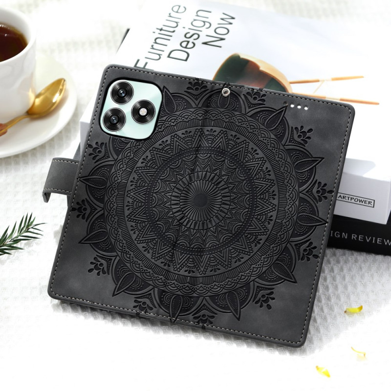 Étui portefeuille élégant en cuir PU avec motif mandala imprimé. Comprend 3 emplacements pour cartes, un compartiment pour espèces, une fermeture magnétique et une dragonne pratique. Support intégré pour un visionnage mains libres.