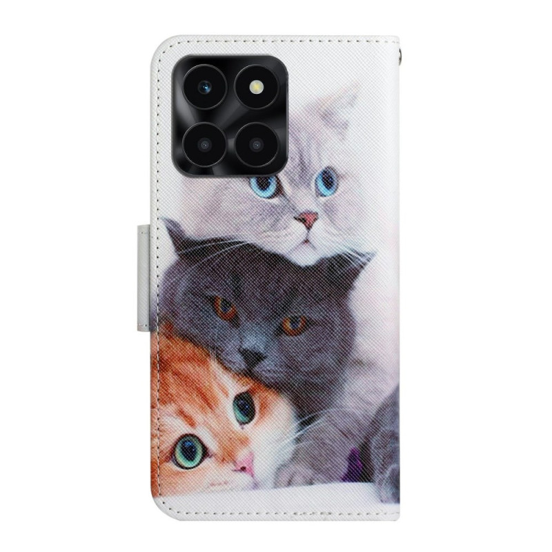 Suojaa Honor X6c 4G / X6b 4G / X6a 4G / X5b / X5b Plus -puhelimesi tyylikkäästi tällä foliokotelolla, jossa on viehättävä kolmen kissan kuvio. Siinä on käytännölliset lompakkotoiminnot, integroitu jalusta ja irrotettava käsihihna, ja siinä yhdistyvät tyylikkyys ja käytännöllisyys jokapäiväiseen elämääsi.
