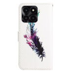 Tutustu tähän tyylikkääseen läppäkoteloon, jossa on höyhenenkuvioinen 3D-tulostus Honor X6c 4G / X6b 4G / X6a 4G -puhelimelle. Käytännöllinen lompakkomuotoilu, jossa on integroitu jalusta, turvallinen magneettisuljenta ja irrotettava käsihihna.