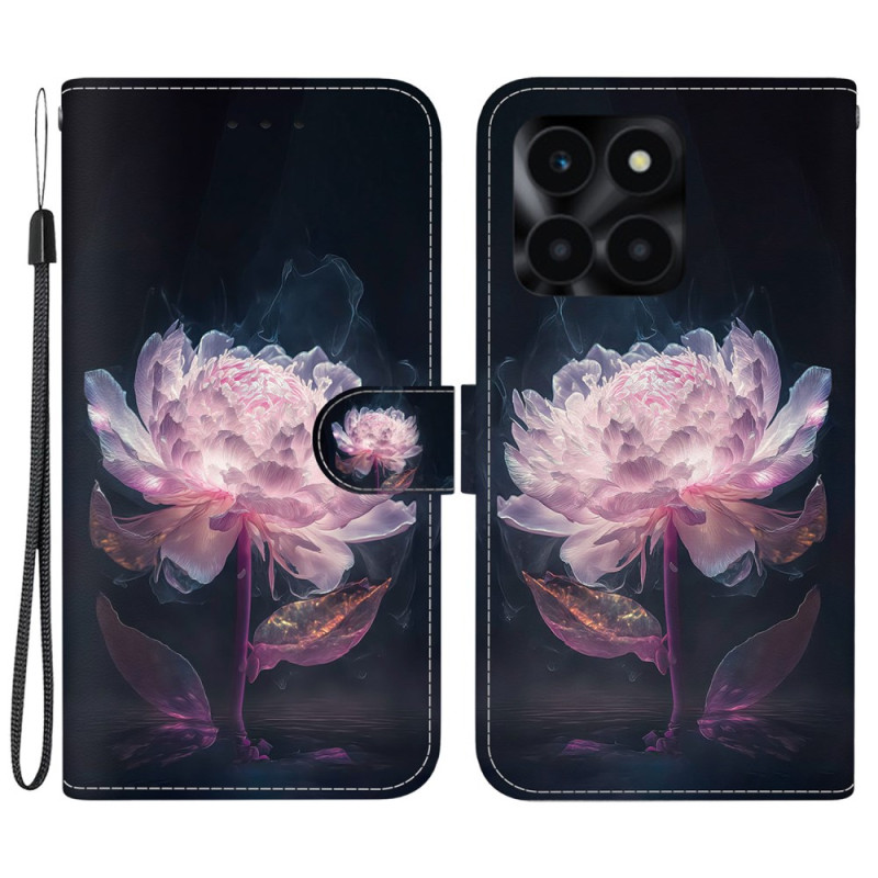 Découvrez cet élégant étui portefeuille pour Honor X6a 4G orné d'un superbe motif pivoine violette. Alliant style et fonctionnalité, il offre une protection complète avec support intégré, rangements pratiques et dragonne sécurisée.